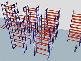 横梁式仓库货架SU模型下载_sketchup草图大师SKP模型