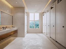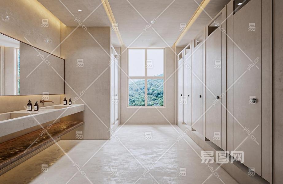侘寂公共卫生间 吸收台 镜子 隔间 卫生间隔断 洗手盆