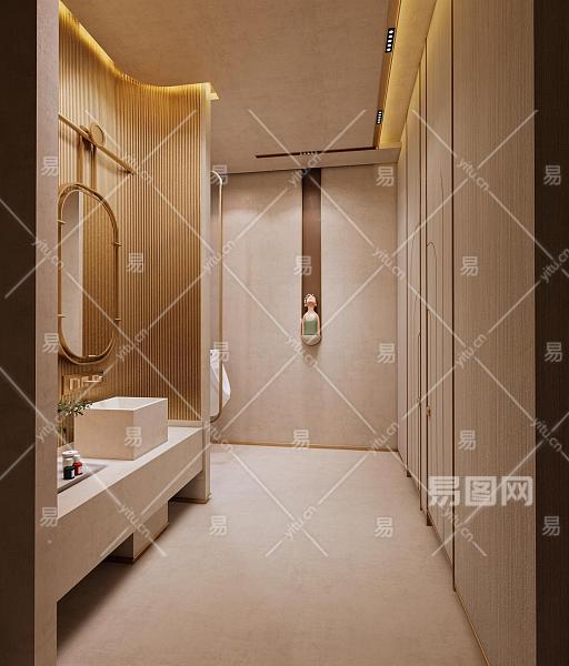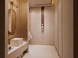 侘寂公共卫生间 洗手台 洗手盆 镜子 隔断 隔间