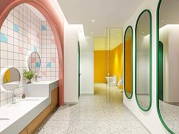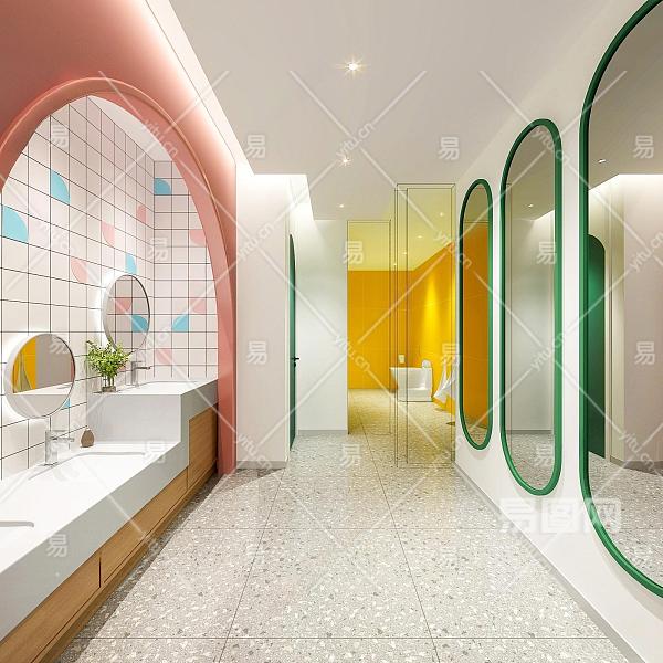 现代公共儿童卫生间 盥洗区 商场卫生间 创意彩色卫生间