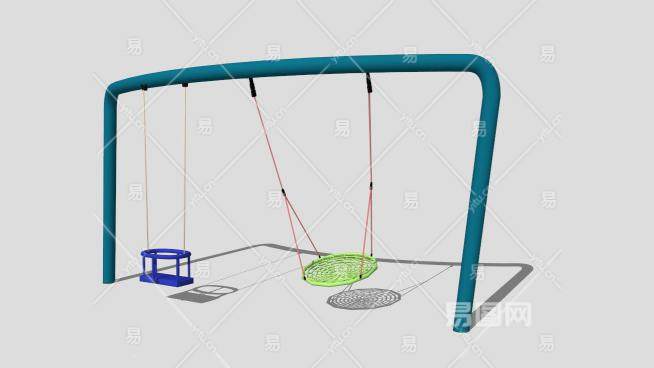 户外健身器材架式双位儿童秋千SU模型下载_sketchup草图大师SKP模型