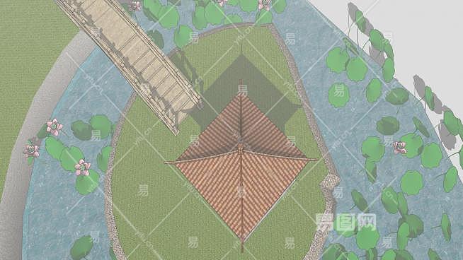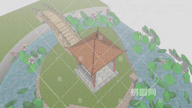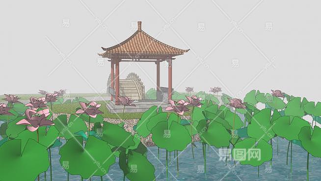 公园荷塘荷花池SU模型下载_sketchup草图大师SKP模型