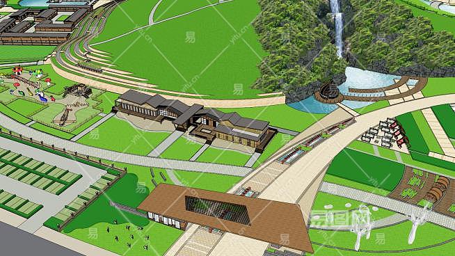 绿野公园现代农业建筑SU模型下载_sketchup草图大师SKP模型