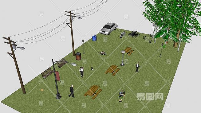 绿地公园休闲场地SU模型下载_sketchup草图大师SKP模型