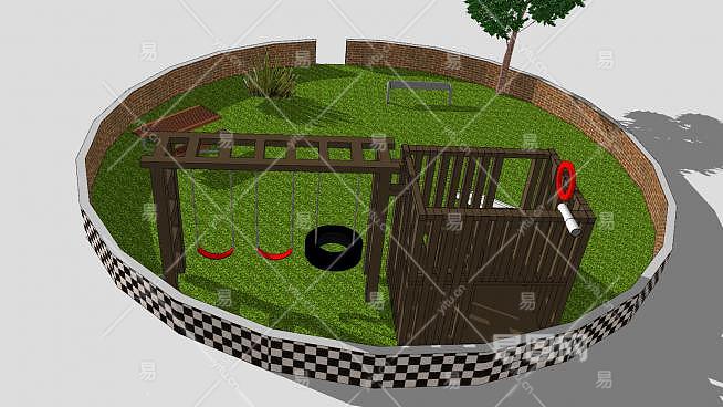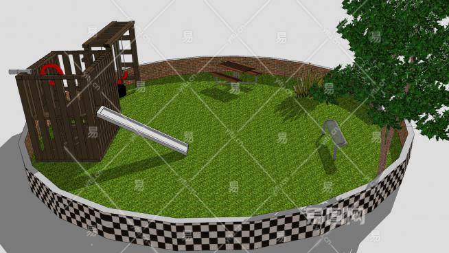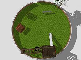 户外圆形休闲操场设备SU模型下载_sketchup草图大师SKP模型