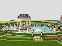 欧式公园景观池SU模型下载_sketchup草图大师SKP模型