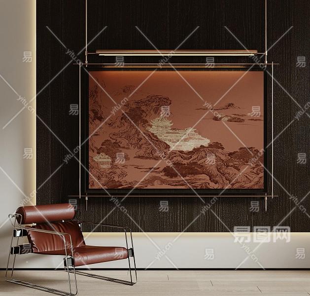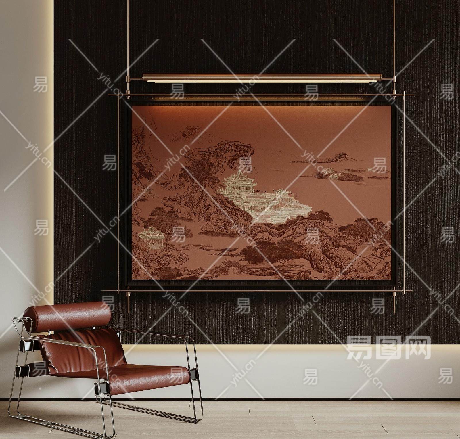 05新中式装饰挂画,装饰画,休闲椅SU模型
