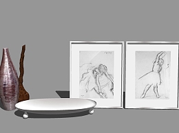 现代挂画摆件组合草图大师模型,装饰画sketchup模型