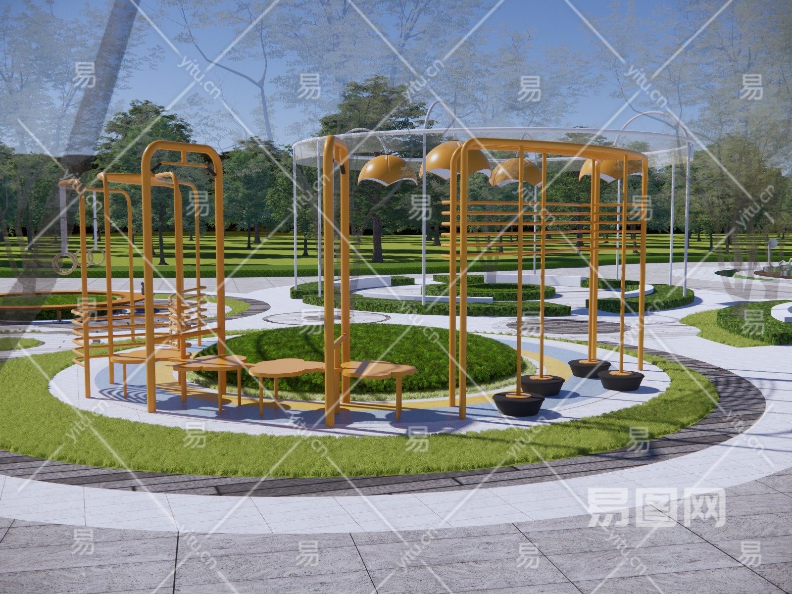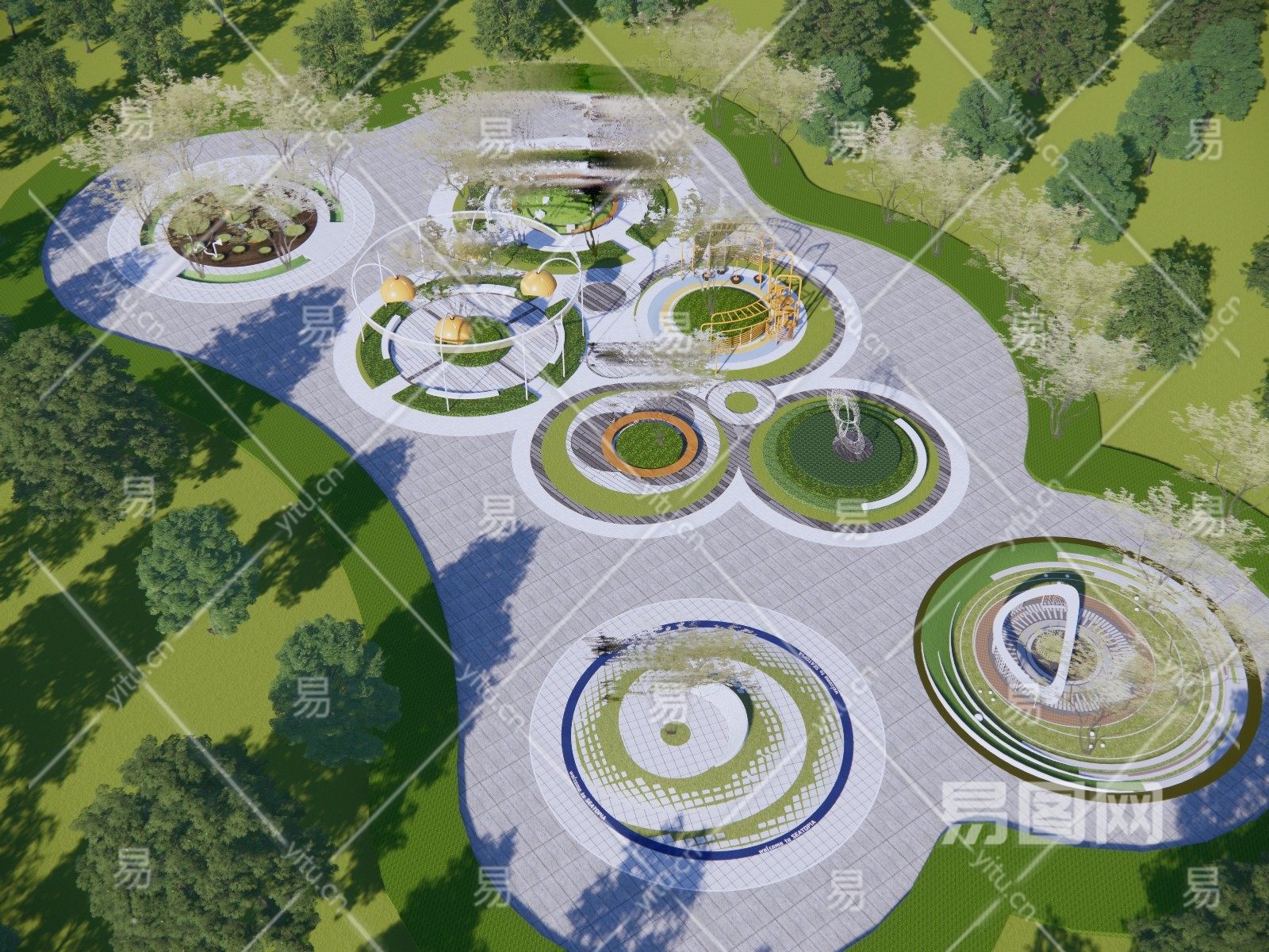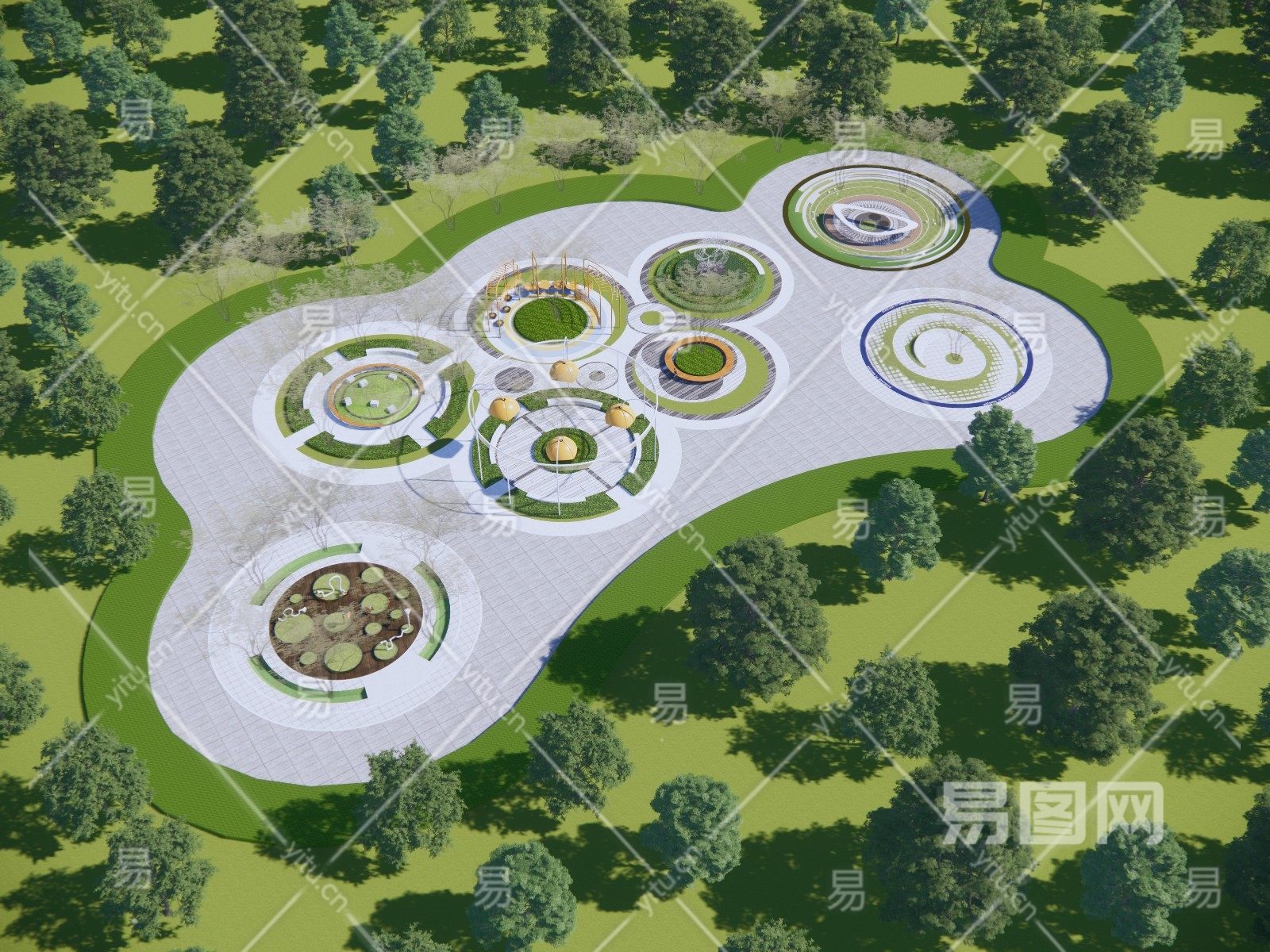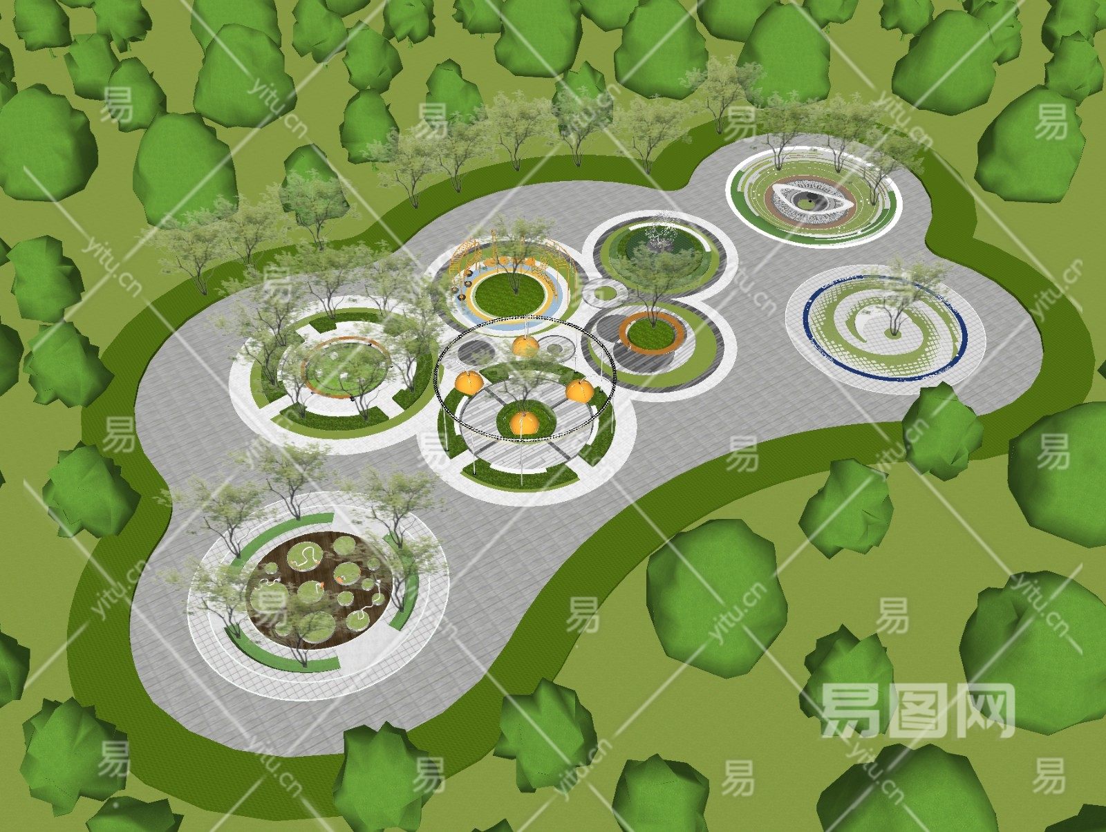 现代 公园景观圆形广场
