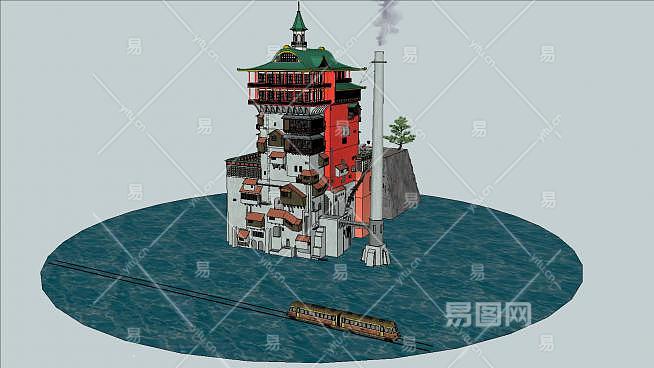 千与千寻建筑海边SU模型下载_sketchup草图大师SKP模型