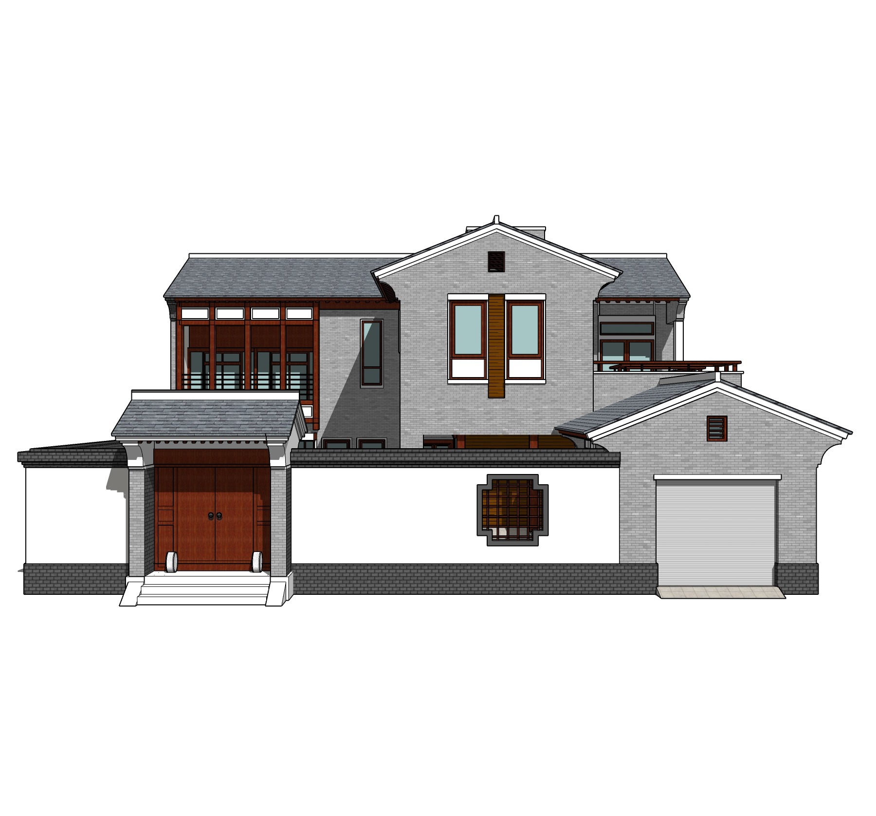 • 中式别墅草图大师模型下载,别墅外观sketchup模型分享