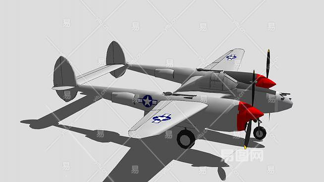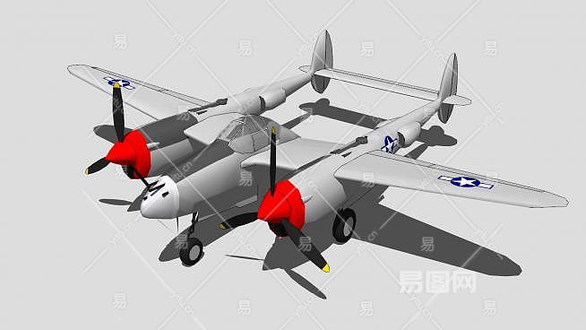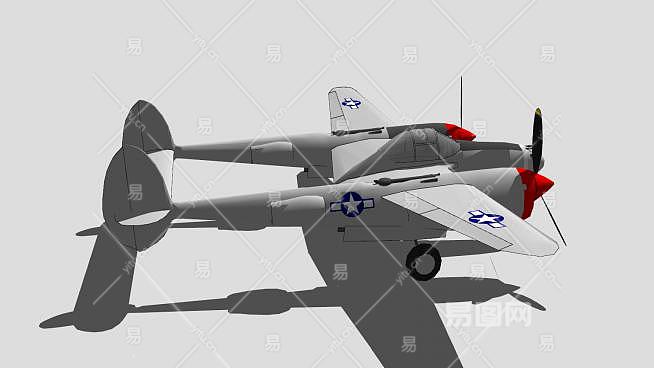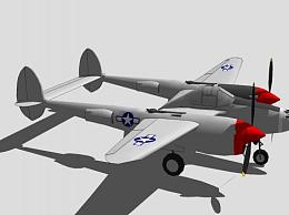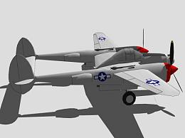 洛克希德P-38闪电截击机SU模型下载_sketchup草图大师SKP模型