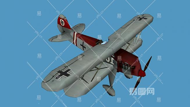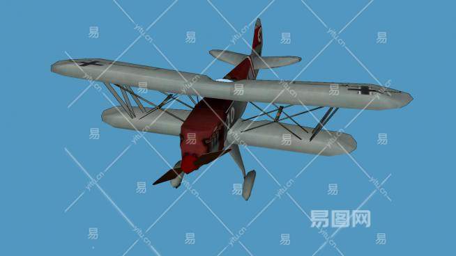 德国He-51双翼飞机SU模型下载_sketchup草图大师SKP模型