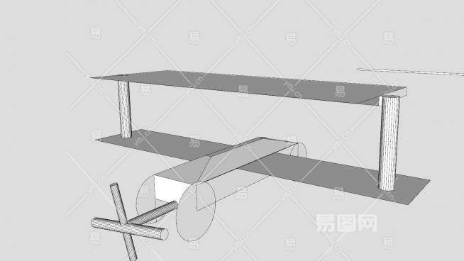 双翼飞机模架SU模型下载_sketchup草图大师SKP模型