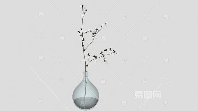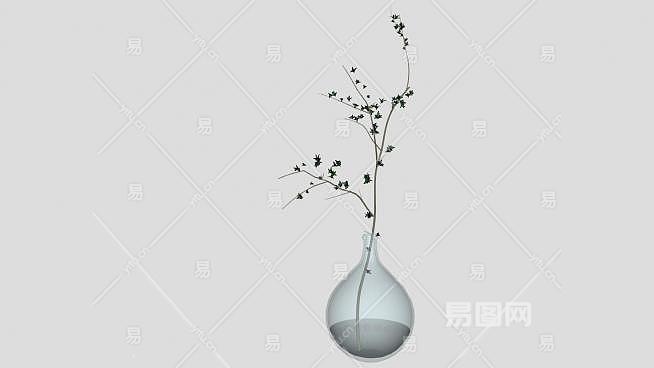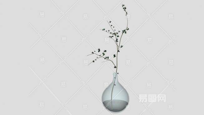 花艺树枝花瓶装饰SU模型下载_sketchup草图大师SKP模型