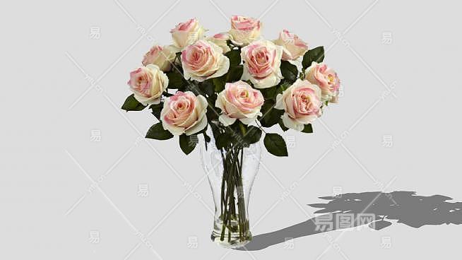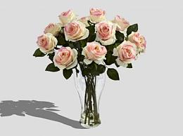 粉白色玫瑰花花瓶SU模型下载_sketchup草图大师SKP模型