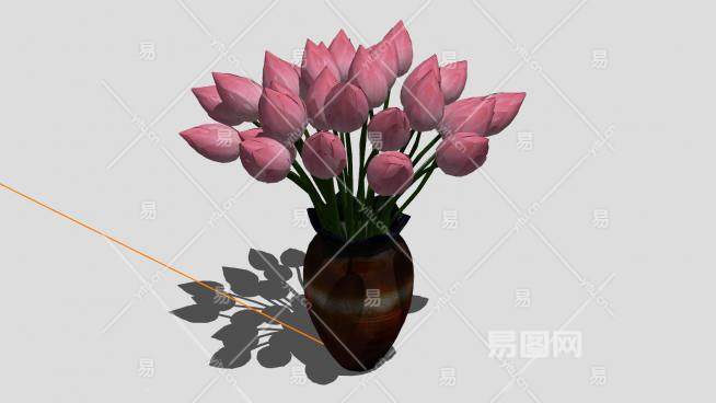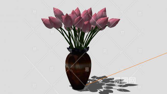 荷花花瓶摆件SU模型下载_sketchup草图大师SKP模型