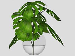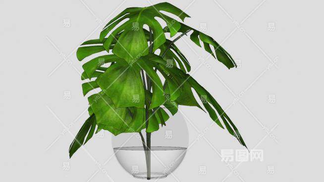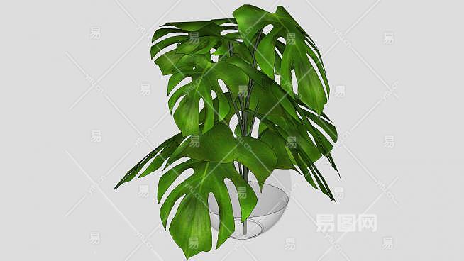 龟背竹花瓶SU模型下载_sketchup草图大师SKP模型