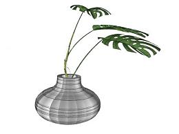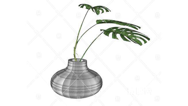 现代花瓶龟背竹SU模型下载_sketchup草图大师SKP模型