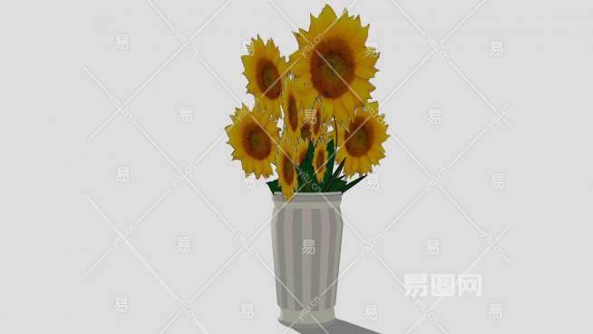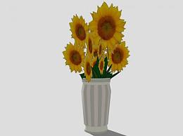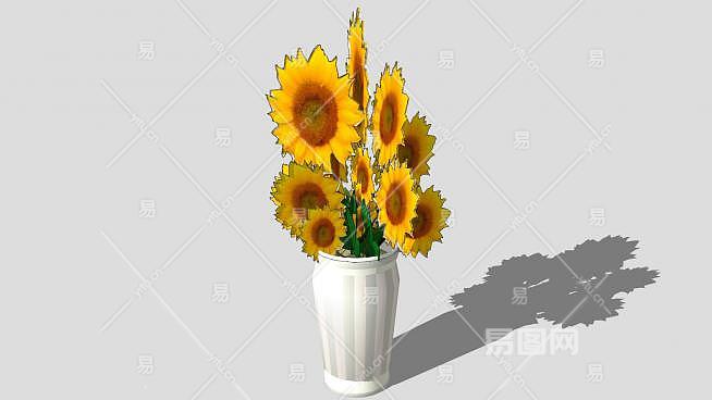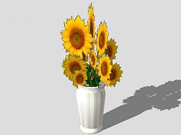白色花瓶向日葵SU模型下载_sketchup草图大师SKP模型