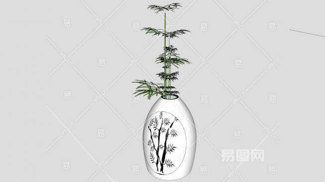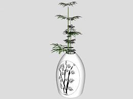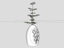 中式瓷花瓶植物摆件SU模型下载_sketchup草图大师SKP模型