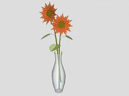 橙色花花瓶摆件SU模型下载_sketchup草图大师SKP模型