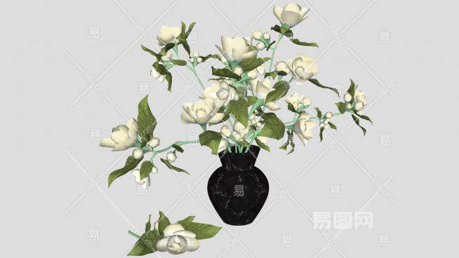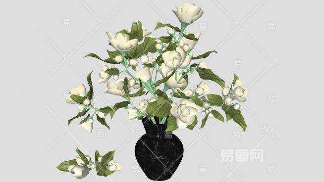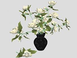 白玫瑰花花瓶SU模型下载_sketchup草图大师SKP模型