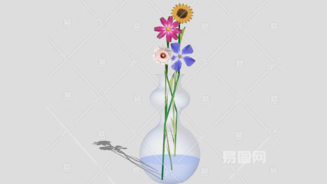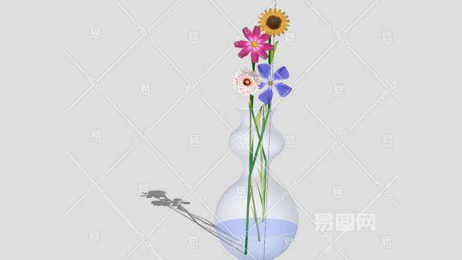葫芦玻璃花瓶和花SU模型下载_sketchup草图大师SKP模型