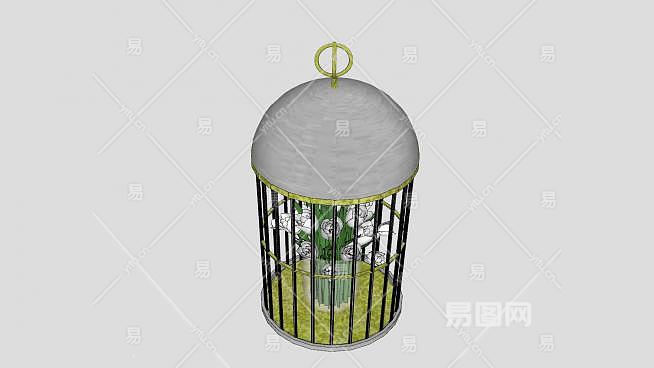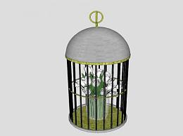 鸟笼花瓶和花SU模型下载_sketchup草图大师SKP模型