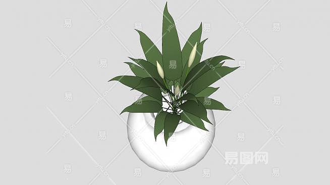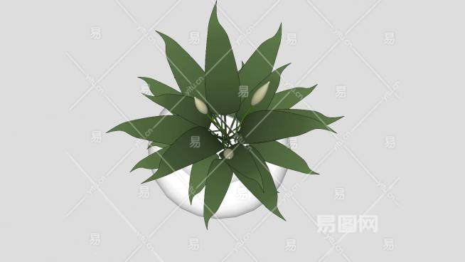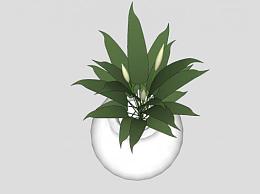 白色瓷瓶中的观赏植物SU模型下载_sketchup草图大师SKP模型