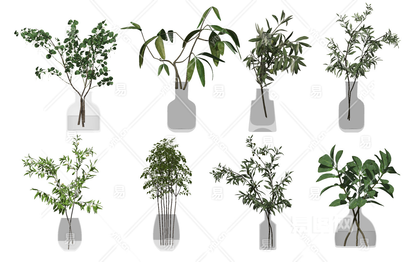 14现代玻璃花瓶,花艺插花,su草图模型下载