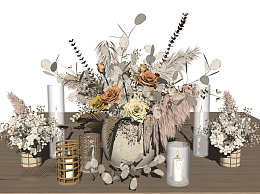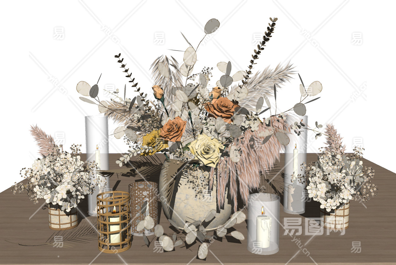 12北欧花瓶花艺,摆件插花su草图模型下载