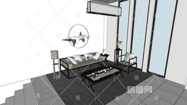 中式大厅会客厅吊顶SU模型下载_sketchup草图大师SKP模型