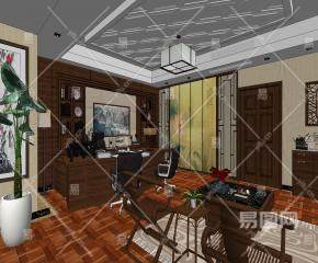 新中式总经理办公室SU模型下载_sketchup草图大师SKP模型