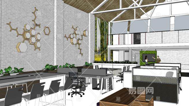 办公空间设计su模型下载_sketchup草图大师SKP模型