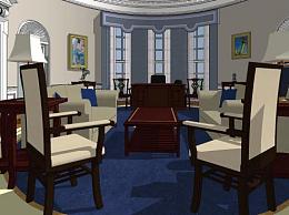 美式白宫办公室SU模型下载_sketchup草图大师SKP模型