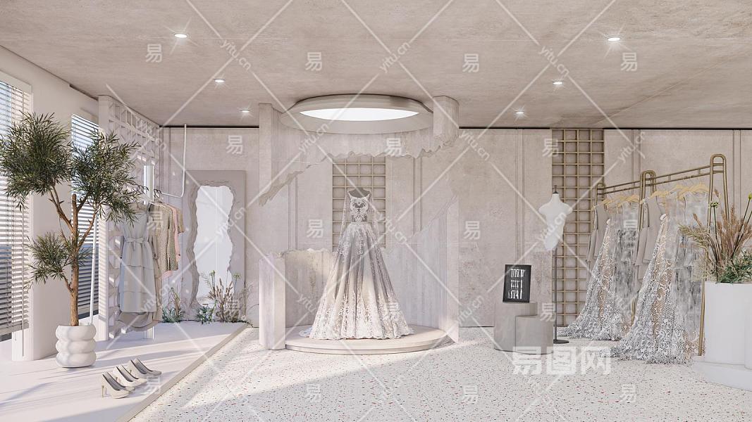 现代婚纱店 女装 服装货架 模特假人 婚庆饰品