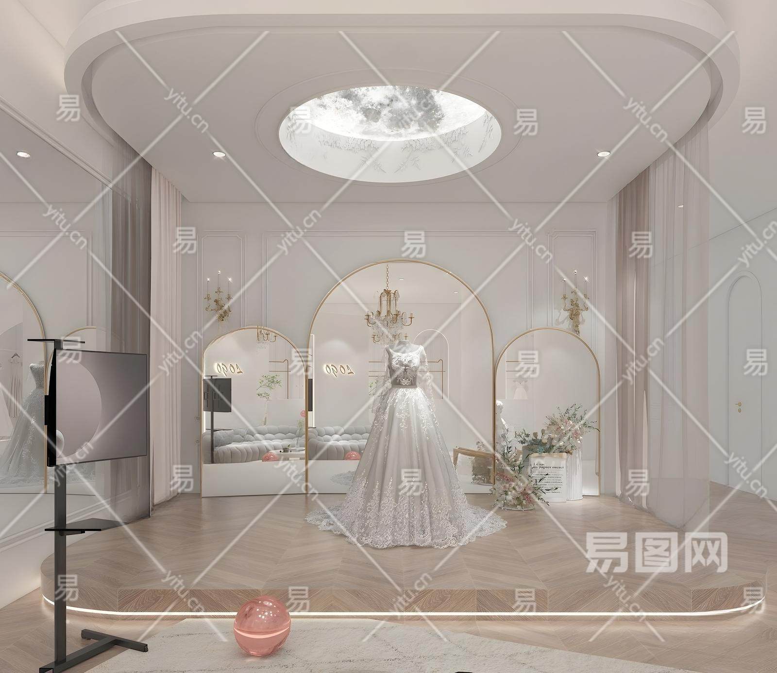 现代婚纱店 婚纱 试衣镜