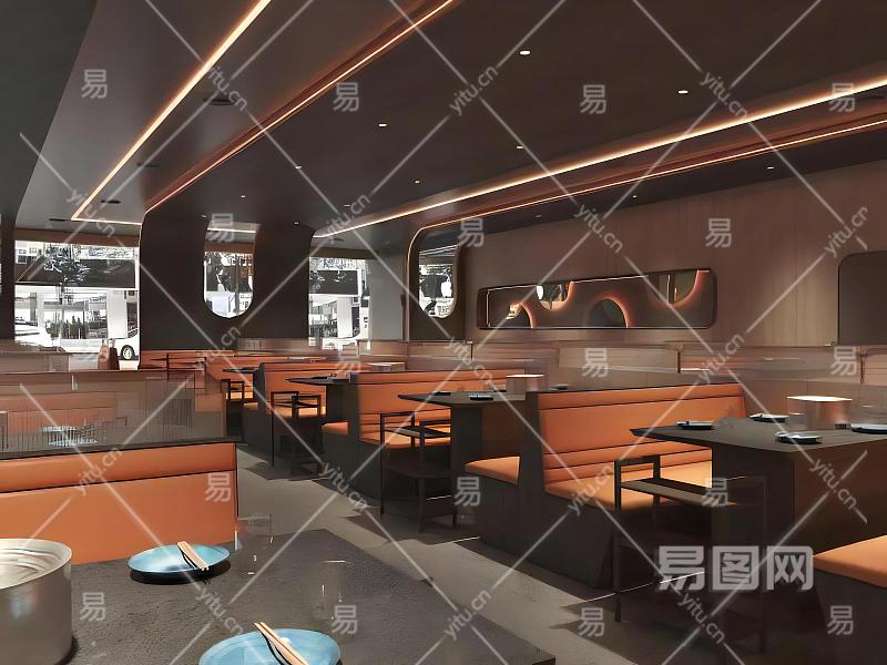 现代国潮风汤锅火锅烤肉店模型