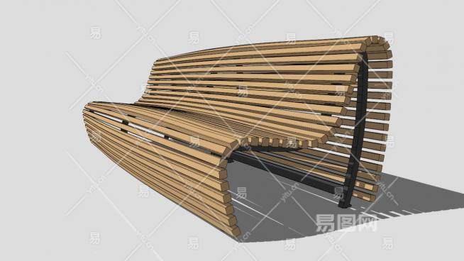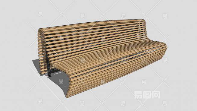 木制公园户外椅SU模型下载_sketchup草图大师SKP模型