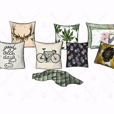 现代布艺抱枕su模型