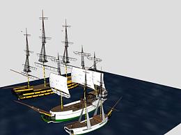 三艘帆船船只SU模型下载_sketchup草图大师SKP模型