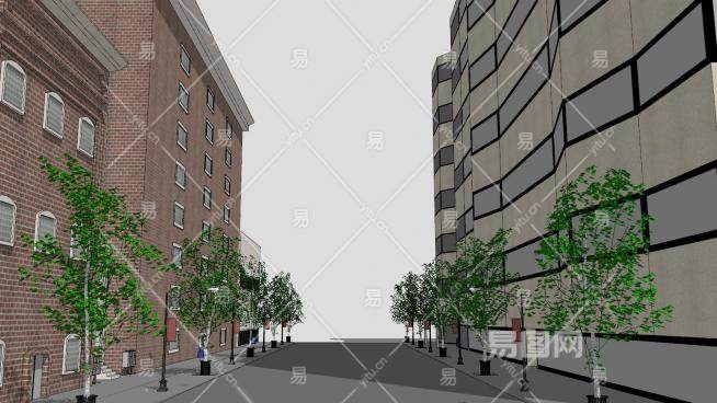 城市街道道路建筑SU模型下载_sketchup草图大师SKP模型
