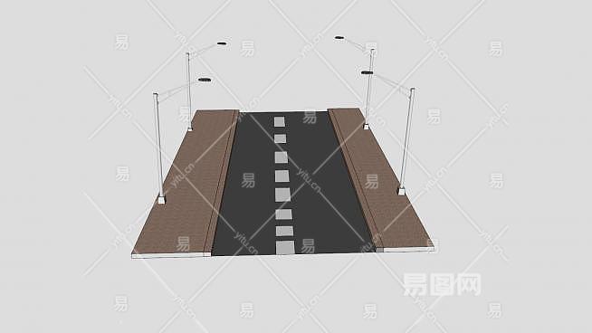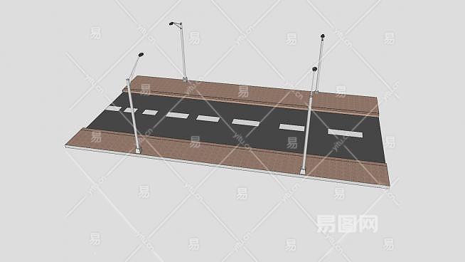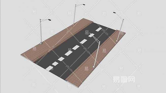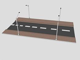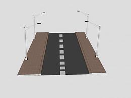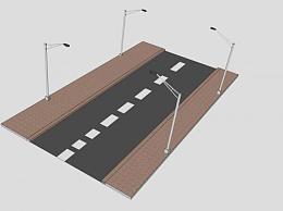 车辆通行道路和路灯SU模型下载_sketchup草图大师SKP模型