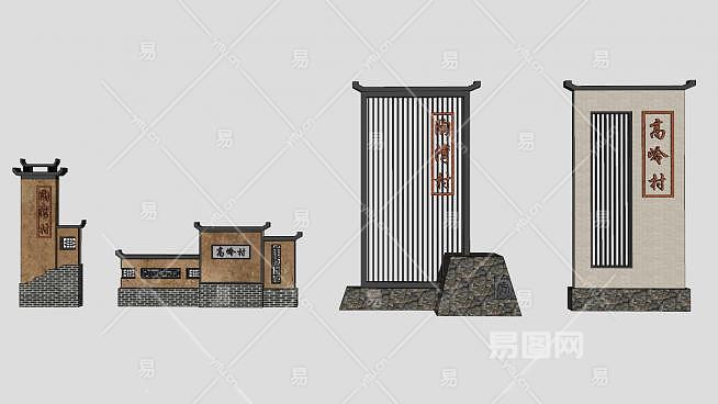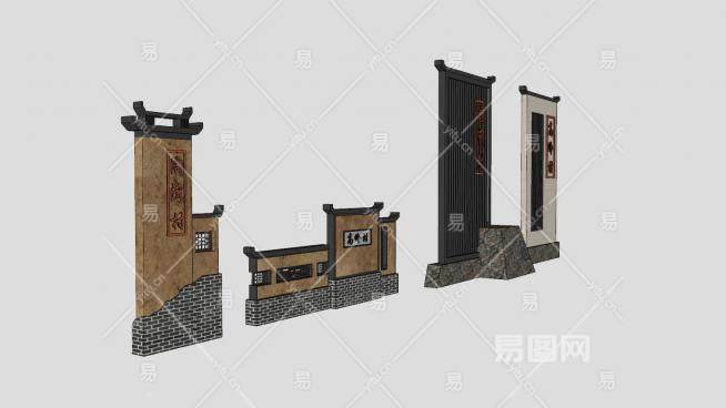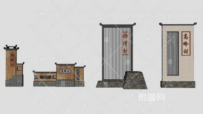 几个乡村标识牌SU模型下载_sketchup草图大师SKP模型