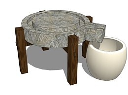 现代石磨小品su模型
