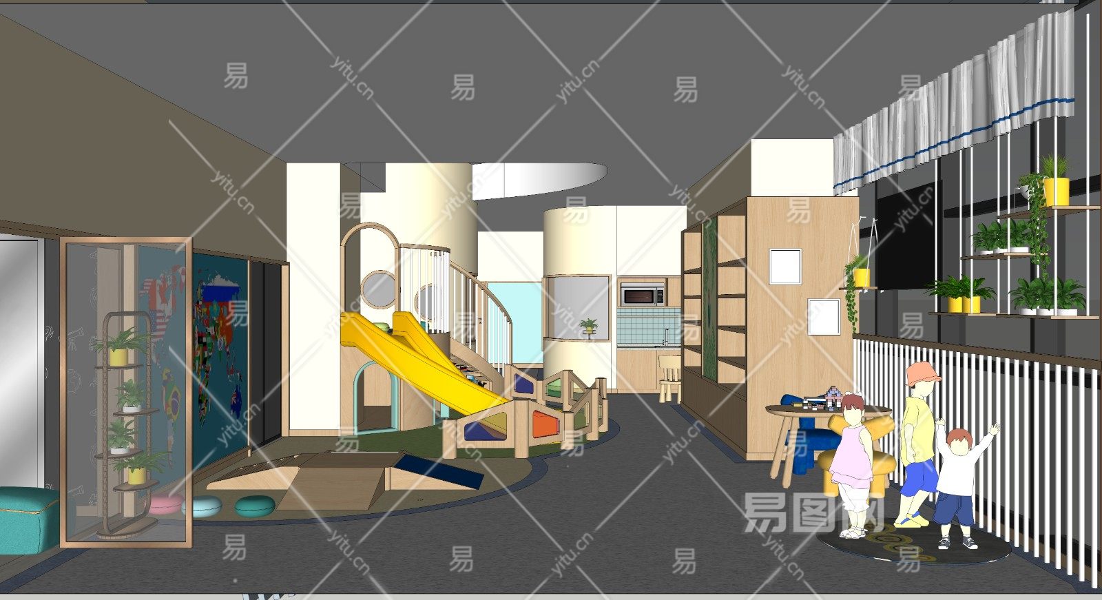 现代幼儿园 早教中心 饮水机 阅览室 滑梯