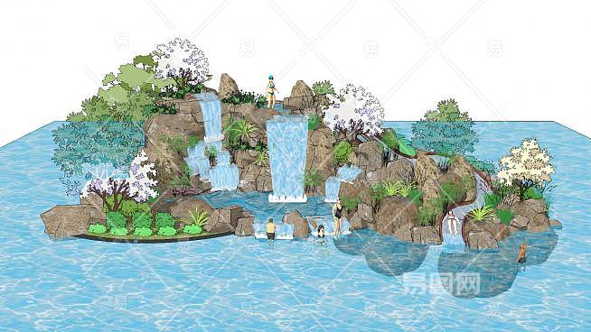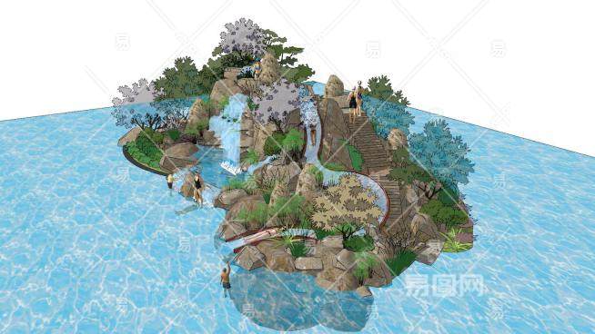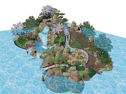 假山流水漂流滑道SU模型下载_sketchup草图大师SKP模型