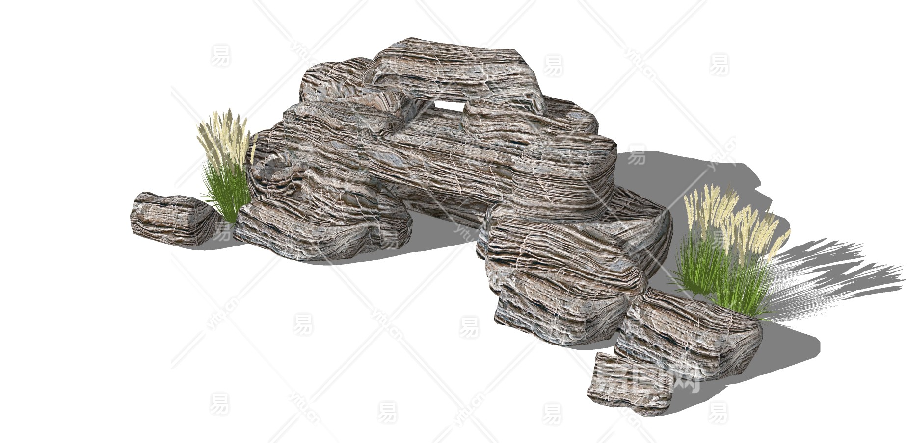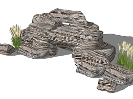 71中式景石 中式景观堆石 千层石 假山叠石 假山石 中式庭院景观小品su草图模型下载