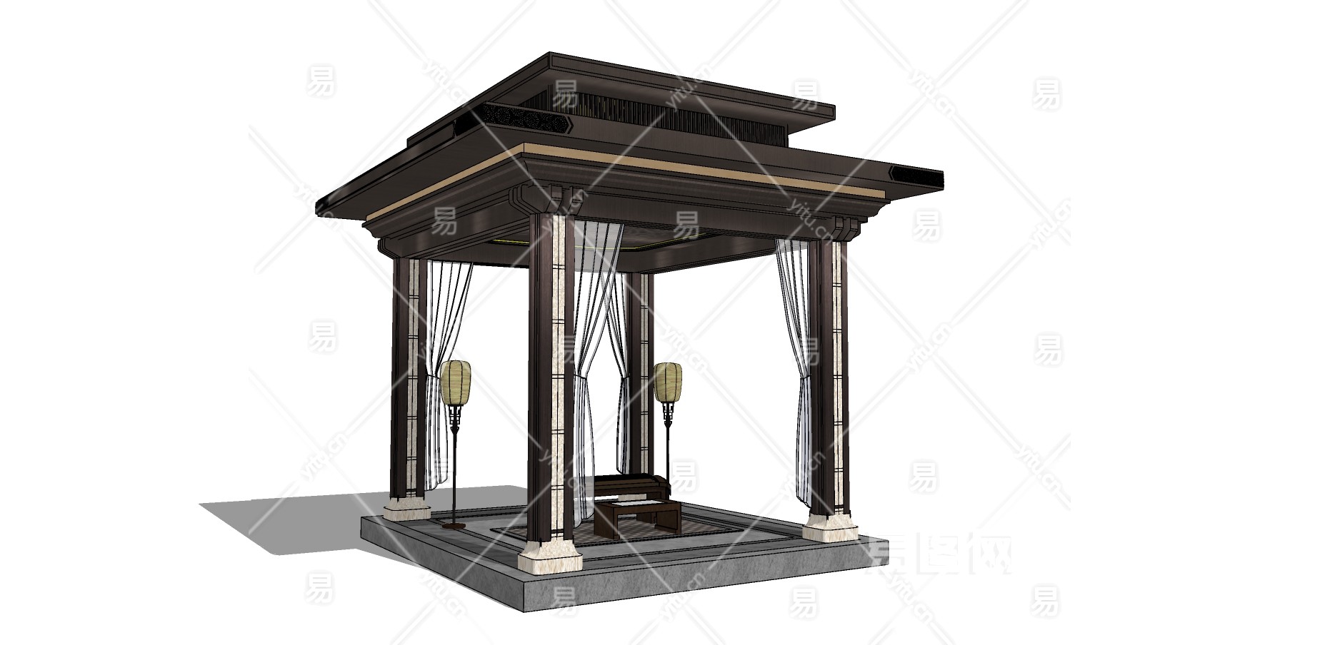 68新中式景观亭子 新中式庭院凉亭 别墅院子 中式建筑构件 中式户外茶室 琴室 中式禅意景观亭su草图模型下载